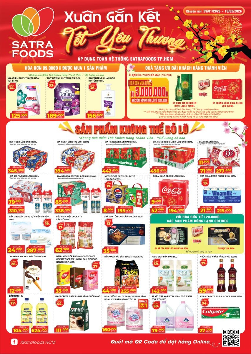 Từ ngày 29/01/2026 đến hết ngày 16/02/2026, Satrafoods thực hiện chương trình giảm giá siêu tốt cùng ưu đãi hấp dẫn sau: (*)