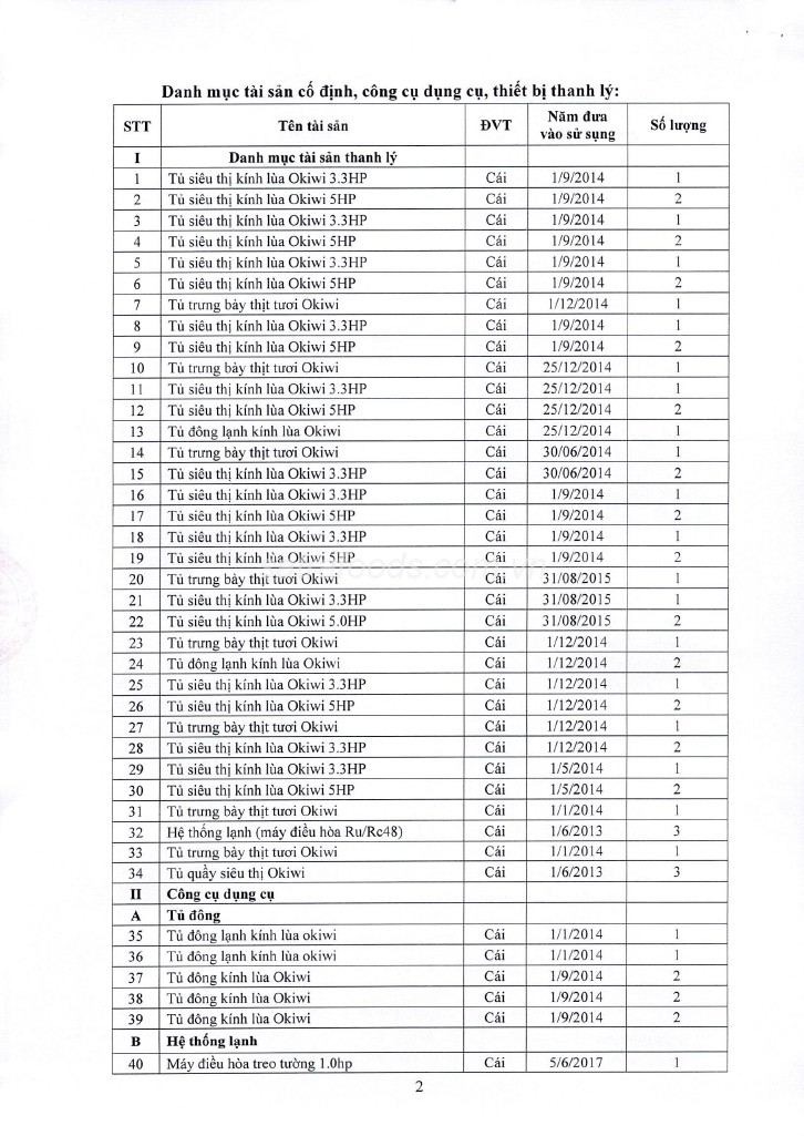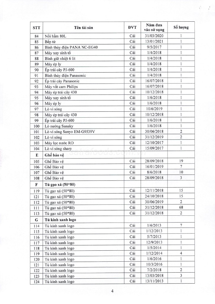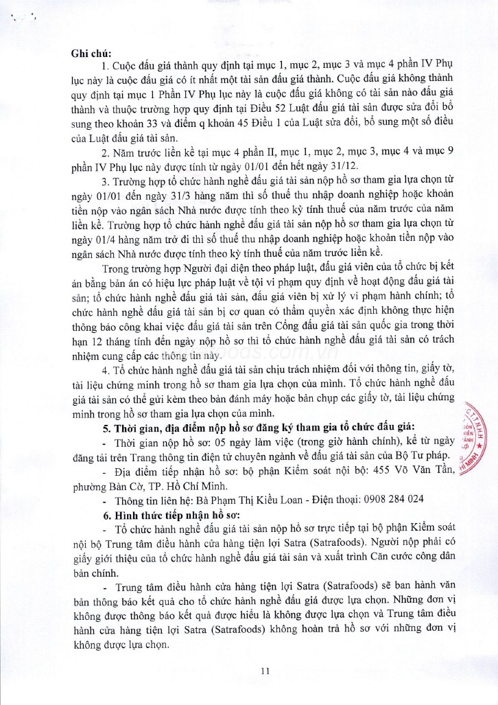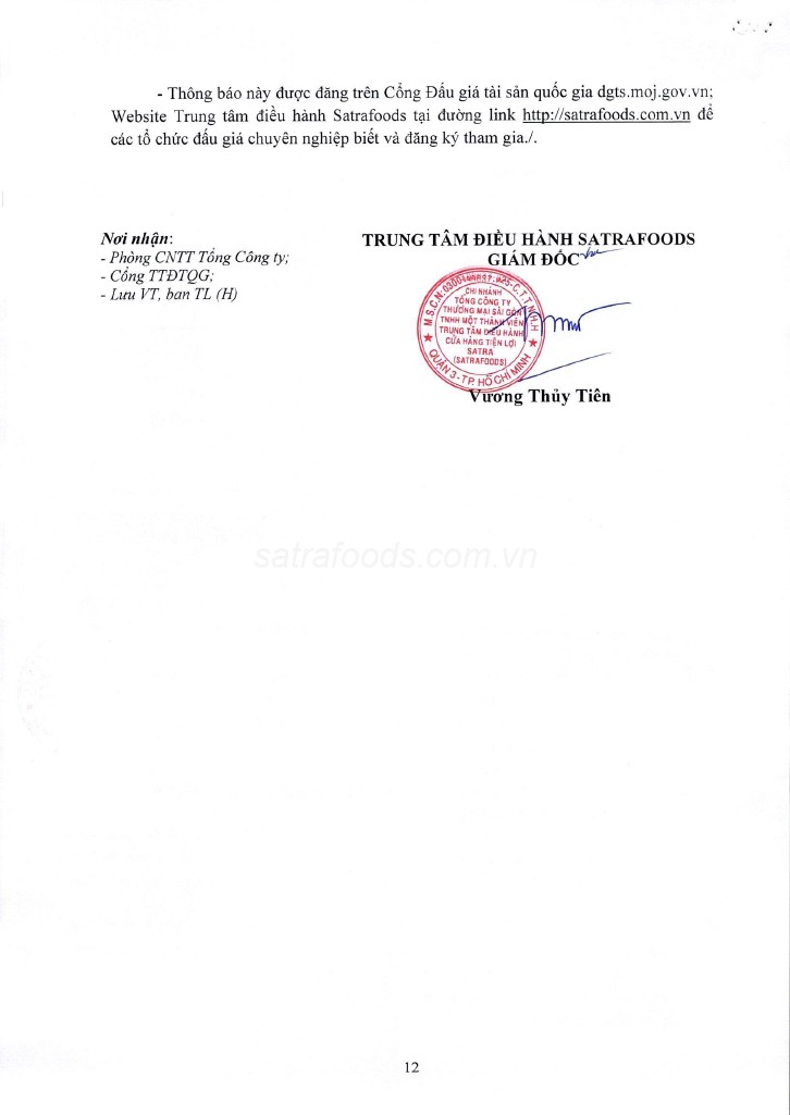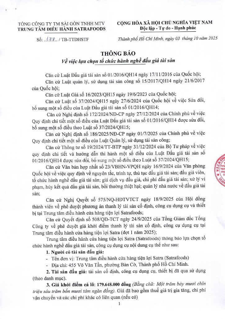 Trung Tâm Điều Hành Satrafoods tổ chức đấu giá tài sản và thông báo lựa chọn tổ chức hành nghề đấu giá tài sản, công cụ dụng cụ.