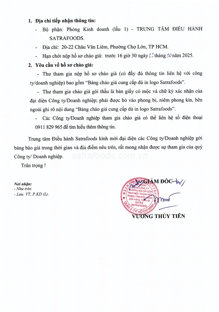 THƯ MỜI CHÀO GIÁ THÁNG 10/2025