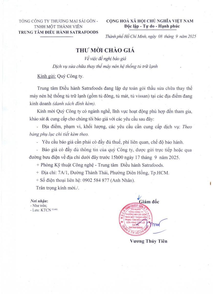 THƯ MỜI CHÀO GIÁ THÁNG 9/2025