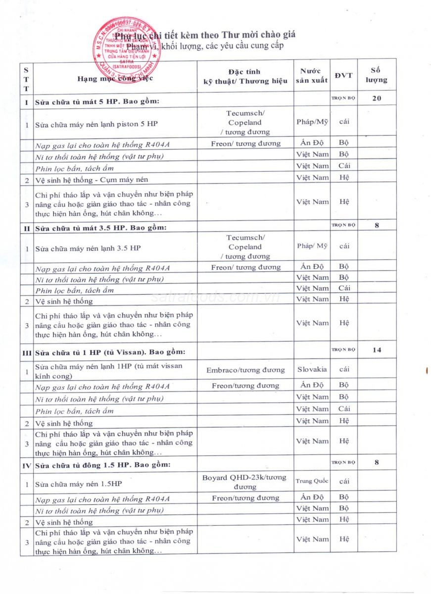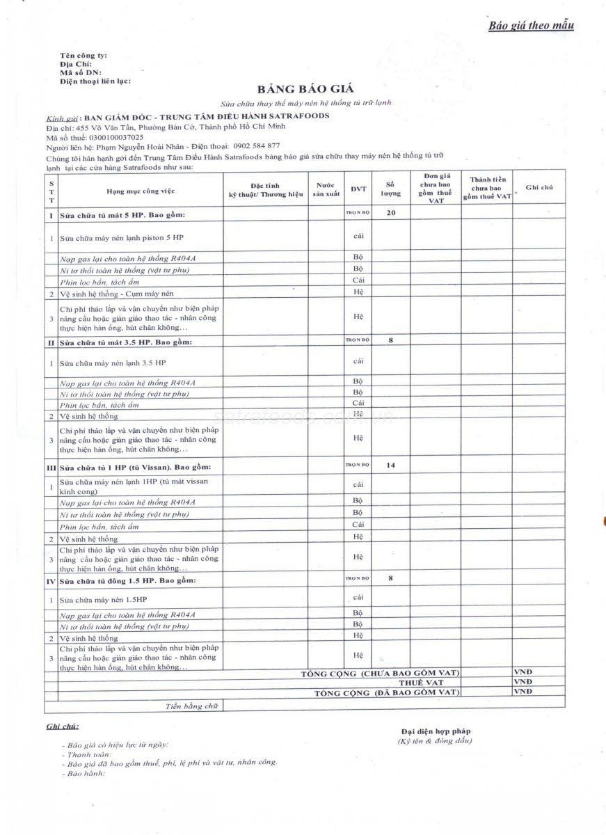 Satrafoods kính mời các đơn vị tham gia các gói thầu về dịch vụ máy nén hệ thống tủ trữ lạnh.